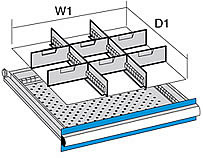 抽屉四周镶有糟片,每隔17cm有一糟蹋,可配合隔板分隔抽屉空间.